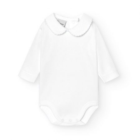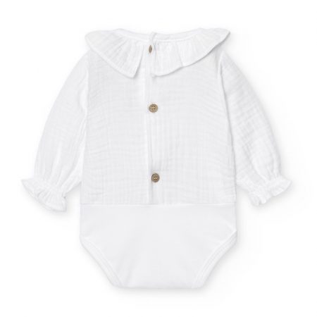 Body Manga Larga en tejido de Bambula con cuello Volante